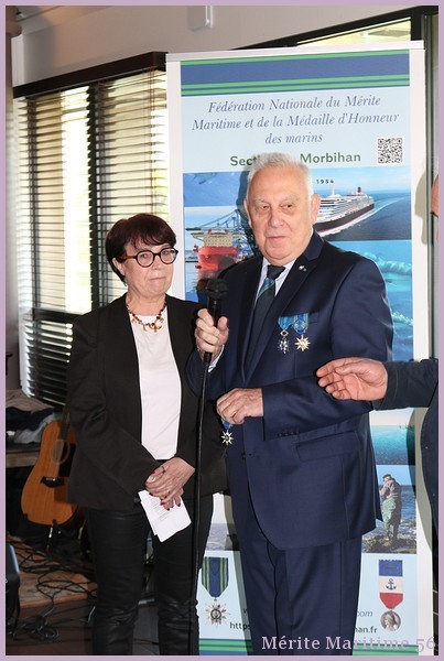 Lors de notre cérémonie des vœux 2026 où nous étions environ 130 personnes à la salle Verrière au port de pêche de Lorient nous avons mis à l'honneur Mr Jean-Paul Burguin ancien patron pêcheur lorientais et réprésentant de la SAMMARLA. Il a été promu officier dans l'ordre du Mérite maritime et décoré par Mr Le Falher Guy. Mme Sophie Guillermic, experte pêche et cultures marines, responsable départementale de BPGO et Mr Patrice Valton, ancien avocat maritime et maire de Larmor-Plage ont été respectivement décorés de la médaille de chevalier par Mr Olivier Le Nezet (Président du Comité national des pêches et du port de Lorient (Morbihan) Télégramme O.F O.F lorient.maville.com