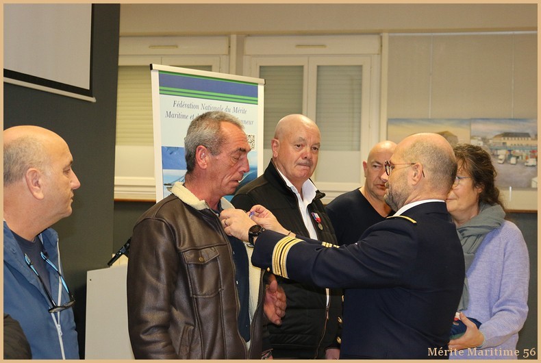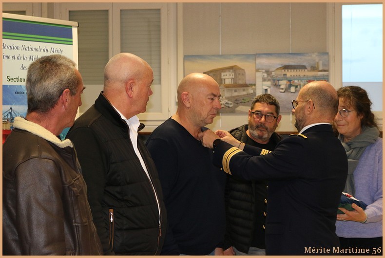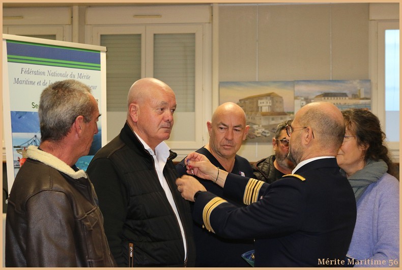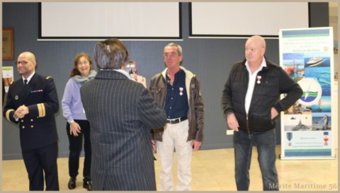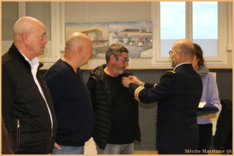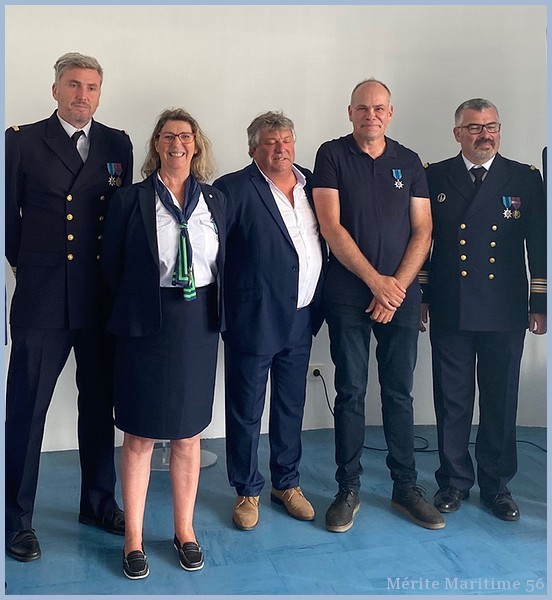 au grade de Chevalier de l'Ordre du Mérite Maritime en catégorie A : Mr DIMEET Thierry de Locmiquélic, Mr JACOB Thierry de Vannes, Mr KERZERHO Maurice de Merlevenez, Mr LE FLOCH Patrice de Bangor.