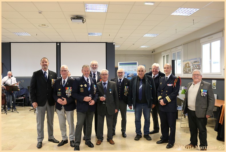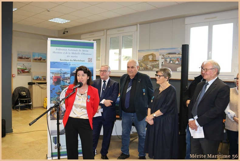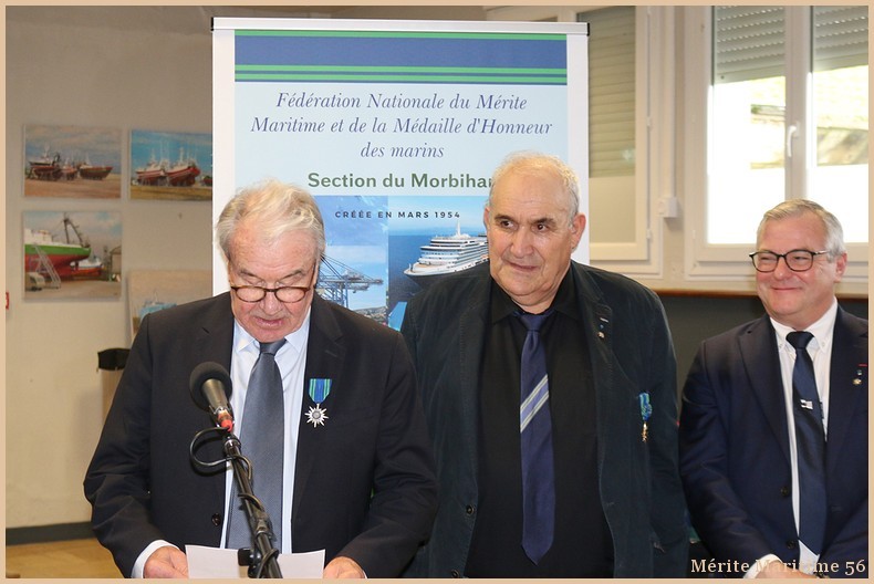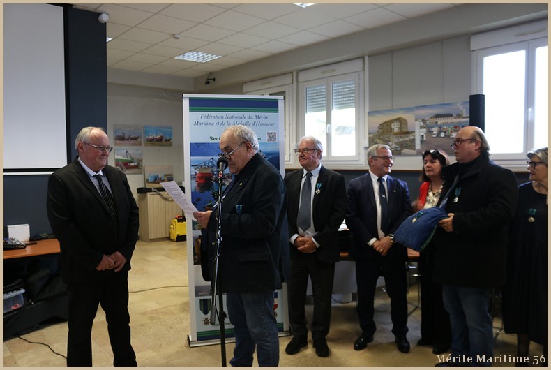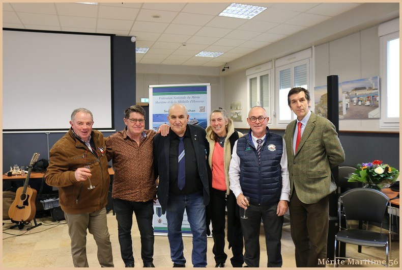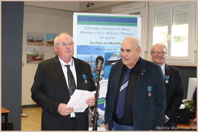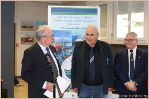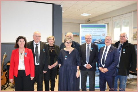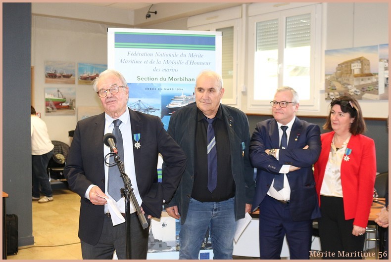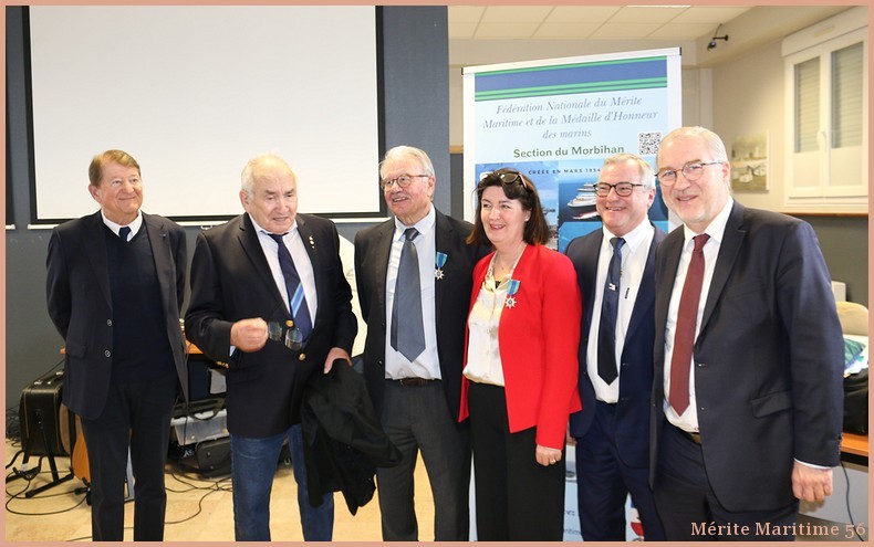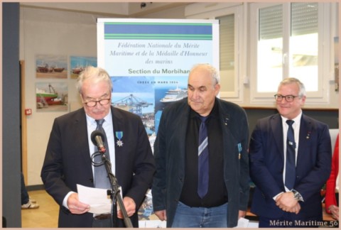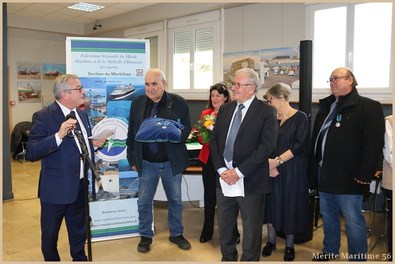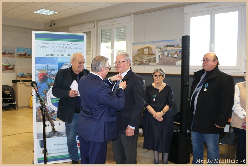 Lors de notre cérémonie des vœux 2026 où nous étions environ 130 personnes à la salle Verrière au port de pêche de Lorient nous avons mis à l'honneur Mr Jean-Paul Burguin ancien patron pêcheur lorientais et réprésentant de la SAMMARLA. Il a été promu officier dans l'ordre du Mérite maritime et décoré par Mr Le Falher Guy. Mme Sophie Guillermic, experte pêche et cultures marines, responsable départementale de BPGO et Mr Patrice Valton, ancien avocat maritime et maire de Larmor-Plage ont été respectivement décorés de la médaille de chevalier par Mr Olivier Le Nezet (Président du Comité national des pêches et du port de Lorient (Morbihan) Télégramme O.F O.F lorient.maville.com