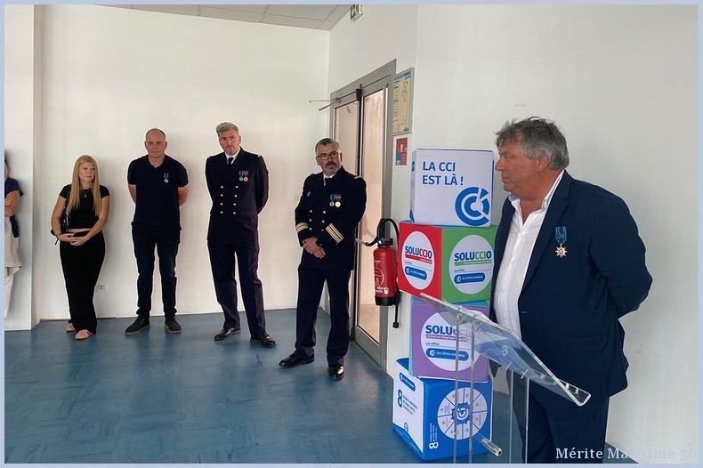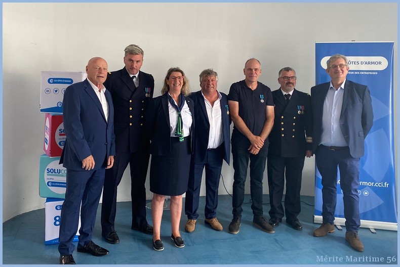 Mr Yves Guirrec, ancien directeur du port de pêche de Lorient-Keroman, et directeur des équipements à la CCI des Côtes d’Armor, a reçu de la Médaille de chevalier dans l'ordre du Mérite Maritime dans les locaux de la criée de Saint Quai Portrieux . cci