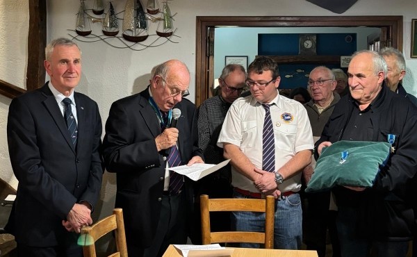 Mr Victor Tonnerre s'est fait remettre la médaille de chevallier de l'Ordre du Mérite Maritime par Mr Jean Tonnerre lors de notre assemblée générale 2024. A.g 2024 Télégramme O.F