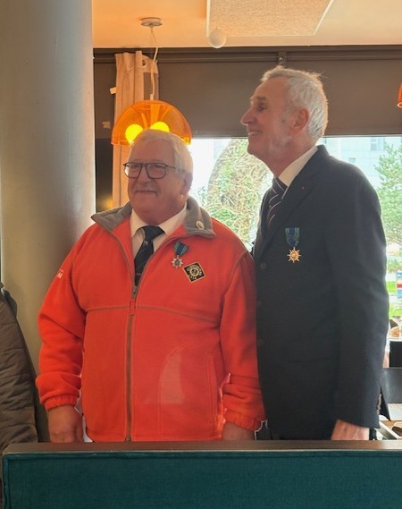 Mr JAFFRE Régis de Plouhinec et Mr GUEZEL Louis d'Etel pour leur nomination au grade de Chevalier de l'Ordre du Mérite Maritime.