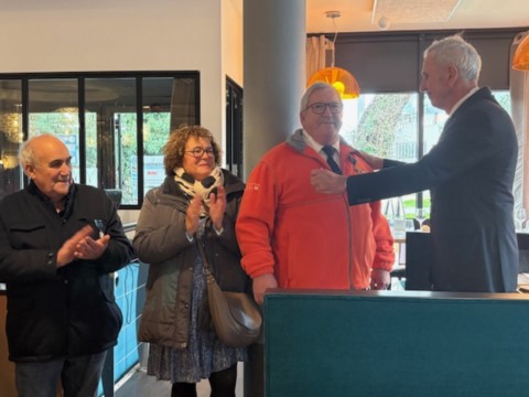 Monsieur Yvon Le Visage, président d'associations maritimes et ancien patron de pêche a été promu officier de l'Ordre de Mérite Maritime lors de la cérémonie du cocktail de printemps le 21 avril 2023 à Plouhinec.