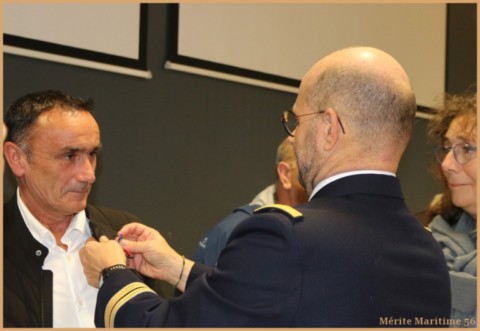 Mr Régis Jaffré a reçu la médaille de chevalier dans l'ordre du Mérite Maritime par Mr Thierry Philippe. Bosco sur les chalutiers Lorientais et sur des navires de recherches océanographiques, il est également adjoint aux ports de la mairie de Plouhinec. Télégramme Ouest France