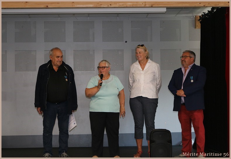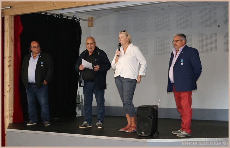 A l'issue de la visite Mr Maurice Le Gloanic de Crach ( patron de pêche retraité) et Mr Hubert Gross de Ploemeur (directeur d'Armement et des Opérations de la Cie Océane) ont été fait Chevalier dans l'Ordre du Mérite Maritime, Mr Thierry Verneuil de Vannes (directeur de l'entreprise Take Outdoors de Vannes et Président du CA de l'ENVSN) a été promu Officier dans l'ordre du Mérite Maritime .