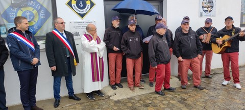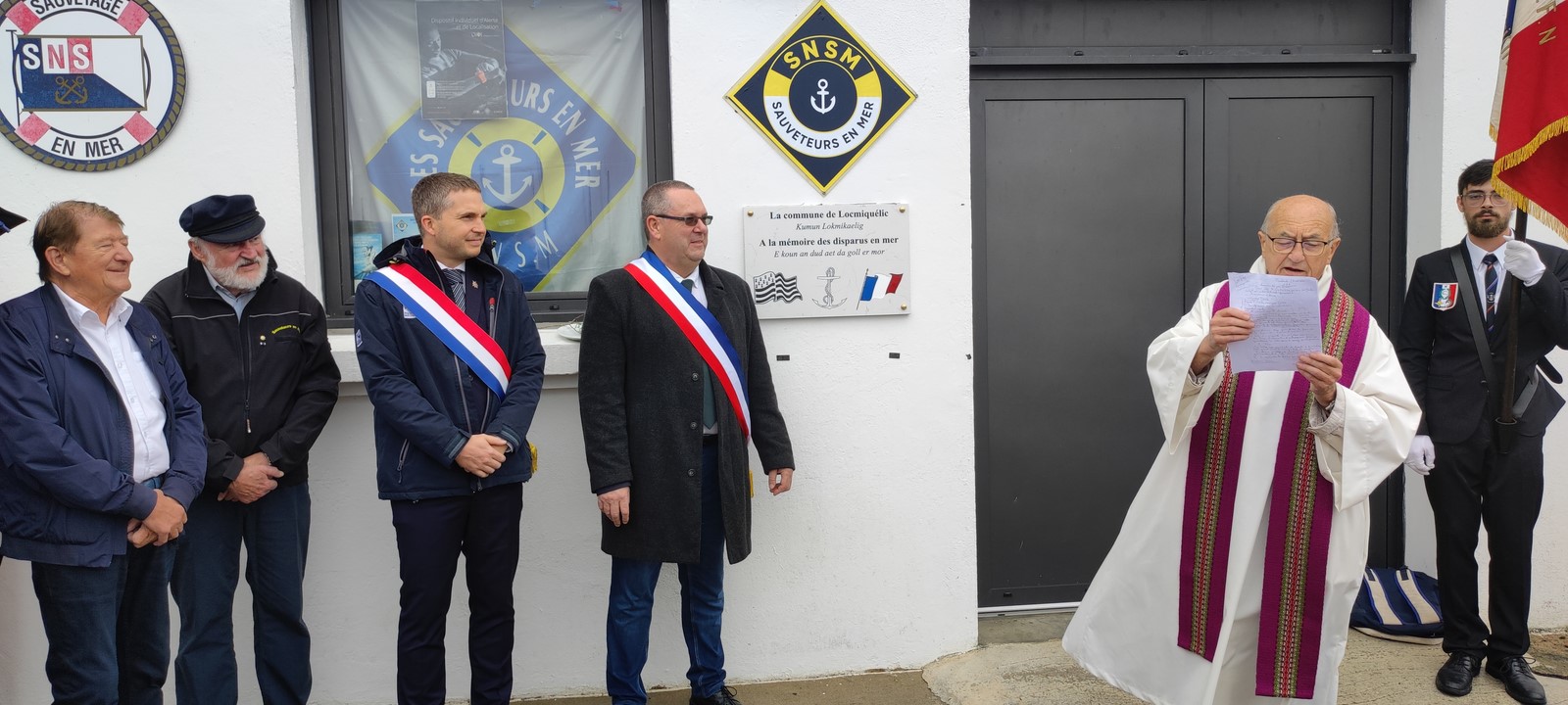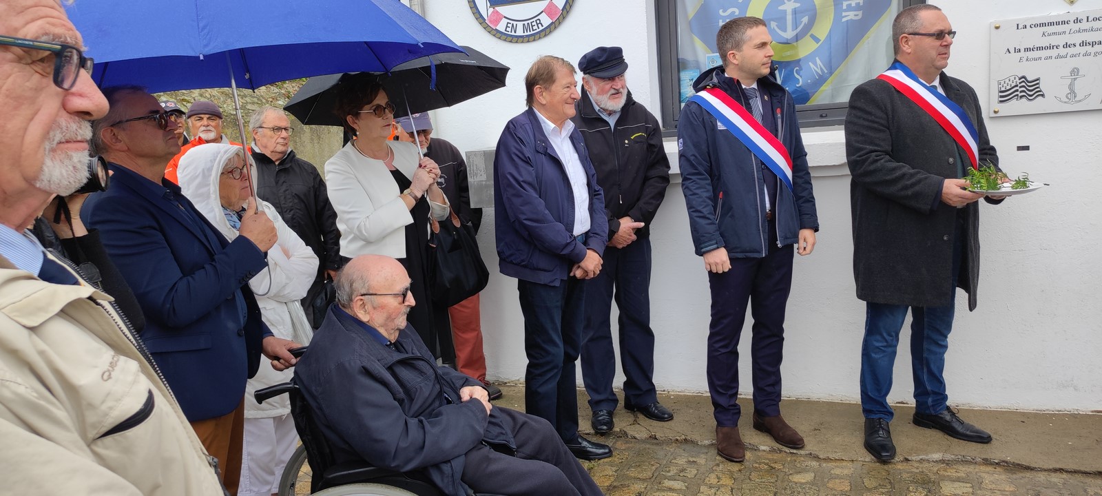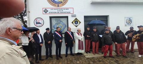 Cérémonie très touchante organisée par la SNSM pays de Lorient à la mémoire des disparus en mer. Une plaque commémorative a été dévoilée puis inaugurée devant les locaux de la station de sauvetage à Locmiquélic. 23 août 2024. O.F