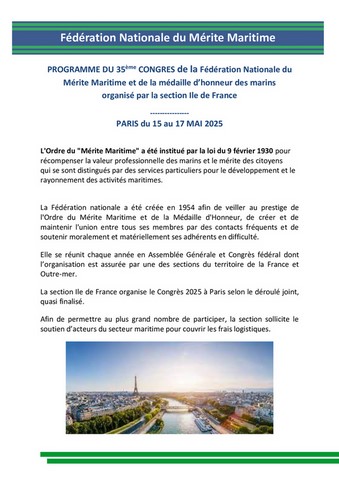 Congrès 2023 : Fédération Nationale du Mérite Maritime et de la médaille des marins.
